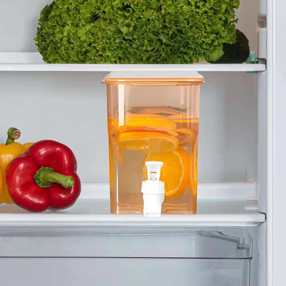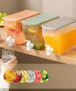 Le distributeur de boissons avec robinet est fabriqué à partir de matériau PP de qualité alimentaire, il convient aux jus de fruits glacés, à la limonade, aux boissons glacées et autres boissons.